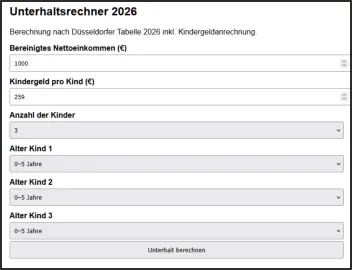 anhand der Düsseldorfer Tabelle bemessen. Sie