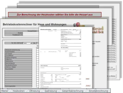 Das Mietrecht- Paket enthält viele wichtige Informationen zum Thema Mietrecht. Das Besondere an diesem Gesamtpaket ist, dass Berechnungsprogramme, Formulare und Musterschreiben enthalten sind. Mitunter ein Berechnungsprogramm, welches automatisch die Nebenkostenabrechnung errechnet und erstellt. Wahlweise nach Personenzahl oder Wohnfläche. Ebenso kann die Heizkostenabrechnung damit erstellt werden. Die fertige Nebenkostenabrechnung/en kann ausgedruckt und dem/die Mieter übermittelt werden. Vorteile: Leichte Handhabung. Berechnet die Vorauszahlungen neu und gibt an, welcher Betrag nachgezahlt oder zurückerstattet wird. Auch interessant für Mieter, weil damit geprüft werden kann, ob die eigene Nebenkostenabrechnung der Richtigkeit entspricht.Die Wohnflächenverordnung schreibt vor, wie die Berechnung von Dachgeschosswohnungen (Schrägen und Balken in der Wohnung) zu erfolgen hat. Das ist wichtig, wenn die Miete nach Quadratmeter bemessen wird. In der Betriebskostenverordnung sind alle Nebenkosten aufgelistet, welche der Vermieter dem Mieter auferlegen kann.Enthalten ist auch ein Programm, das berechnen kann, ob Sie Anspruch auf Beratungs- oder Prozesskostenhilfe hätten und ein Berechnungsprogramm, das die Kosten eines möglichen Prozesses und Anwaltskosten berechnet. Damit kann das Kosten-Risiko abgeschätzt werden, falls ein Prozess angestrebt werden sollte. Es wird auch angegeben, welche Partei die Kosten tragen muss, bei einem Erfolg aber auch Nicht-Erfolg. Anträge auf Beratungs- und Prozesskostenhilfe sind enthalten. Auch enthalten, alle aufgelisteten Formulare und Musterschreiben.Weiter, eine Berechnungstabelle, die eine zulässige Mieterhöhung wegen Anpassung an den Mietspiegel prüft und eine Berechnungstabelle, die eine zulässige Mieterhöhung wegen Modernisierung auf Richtigkeit feststellen kann.